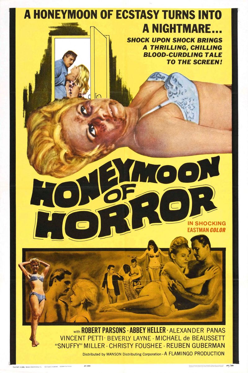 Have you seen the movie Honeymoon of Horror (1964) and do you want to let us know how good or bad you thought this movie was? On MovieMeter it is possible to vote on movies and series. The scale ranges from 0.5 to 5 stars (per half star). The many movie lovers on this site appreciate a substantiation of your vote. You can do this by writing down your opinion on this page.