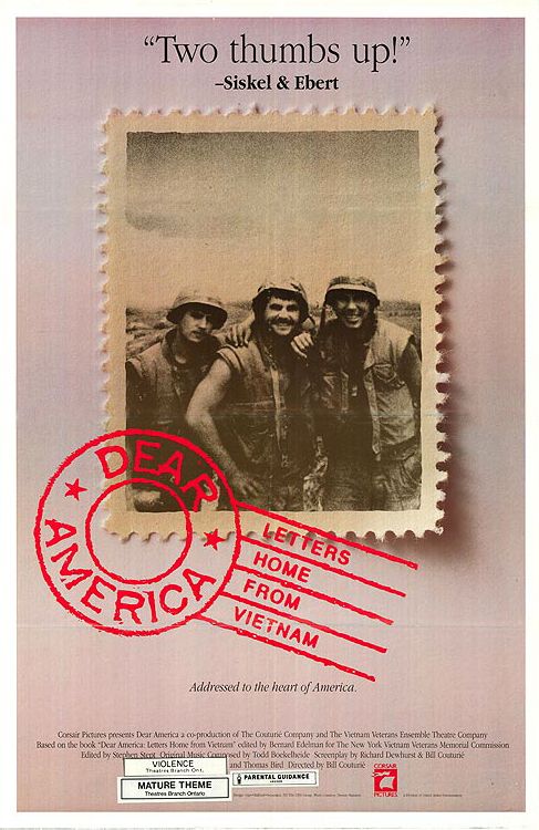 Have you seen the movie Dear America: Letters Home from Vietnam (1987) and do you want to let us know how good or bad you thought this movie was? On MovieMeter it is possible to vote on movies and series. The scale ranges from 0.5 to 5 stars (per half star). The many movie lovers on this site appreciate a substantiation of your vote. You can do this by writing down your opinion on this page.