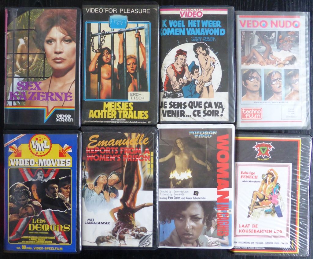 Die Variety tape lijkt me anders ook wel bijzonder. En die Sugar Hill ging laatst voor een flink bedrag van de hand (maar deze sleeve is verknipt?). Die 'Women in Cages' heeft een vreemde spelling blunder: 'Woman in Caghes'. En je hebt er wat labels tussen zitten die ik niet ken, zoals die Blaupunkt Video Club.