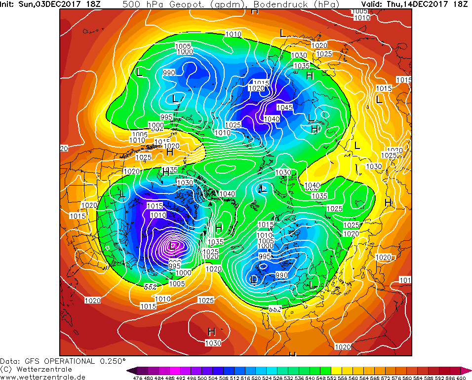 Voor deze winter liggen er meer kansen in het begin en einde v/d winter. In het begin v/d winter doordat La Nina nog in de eastern phase zit (EP La Nina), en je ziet dat er wel mogelijkheden zijn voor midden- en eind november / begin december. Maar uiteindelijk moet het dan goed vallen, en als het dan goed valt, zal het meer dan waarschijnlijk toch een blitzwintertje worden. Bovendien kan de vele vervoerde warmte van orkanen (die warmte van de evenaar naar noordere breedtes verplaatst) ook meehelpen, voor een in principe "vroege start" van de winter, maar dat is een heel tijdelijk (en klein) voordeel, Er zijn verder ook kansen op een SSW, en hoewel ik wel geloof in die theorie, kan een SSW bijvoorbeeld ook gewoon zijn uitwerking hebben in een regio die niet relevant is voor ons, bvb. Noord-Amerika of Oost-Azie. Als de SSW bvb. zorgt voor een split van de poolwervel bij de Aleoeten, en daar de split het eerst zijn uitwerking in de atmosfeer kent, dan krijg je een dikke plas kou bij Canada die allemaal de Atlantische Oceaan ingaat, en dan daar juist zorgt voor een trein van depressies.