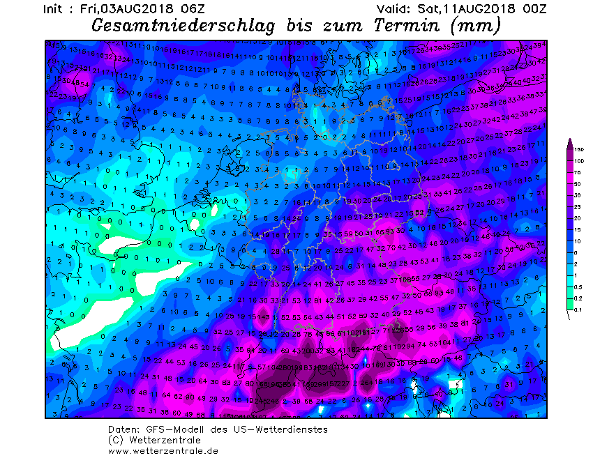 GFS toont deze kaart, wat weer opnieuw geen neerslag is voor deze streek tot 11 augustus.