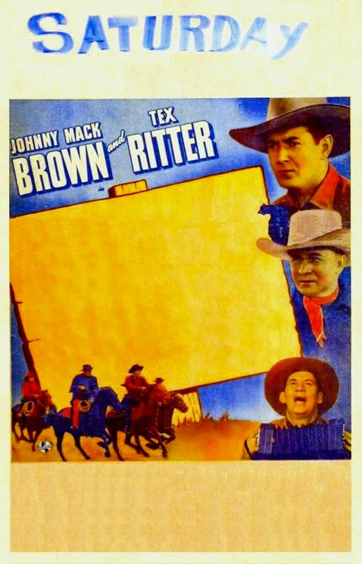 In dit geval voor Johnny Mac Brown B-Westerns. De bioscoopeigenaar kon hierop ook de uitzendtijden vermelden.