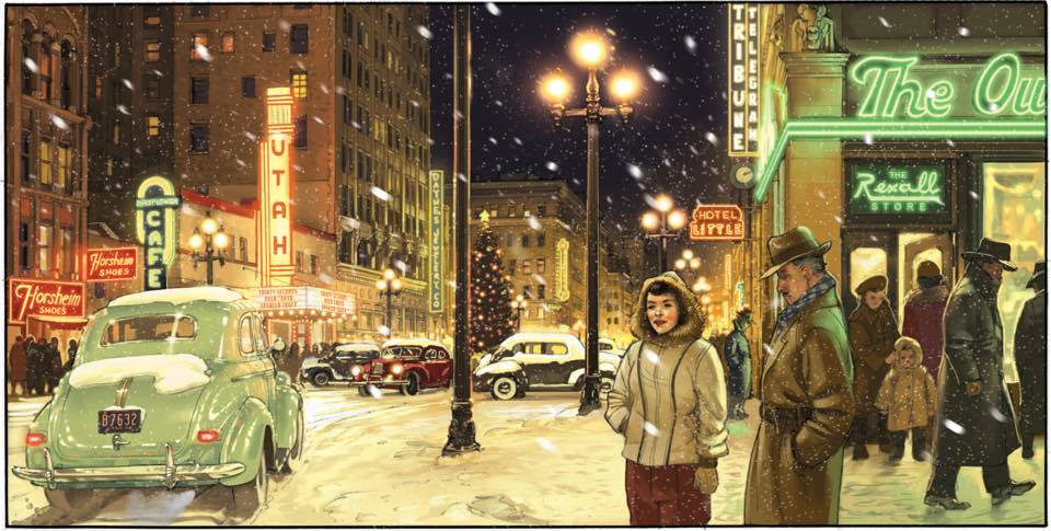 Preview #9 uit ANGEL WINGS deel 6 (okt. 2019): scène: hoofdstraat in Salt Lake City, Winter 1944: https://i.postimg.cc/kMHXMR6k/AW6-preview9aa-Salt-Lake-City-1944-2.jpg https://i.postimg.cc/YSyYpq18/AW6-preview9c-Salt-Lake-City-1944.jpg