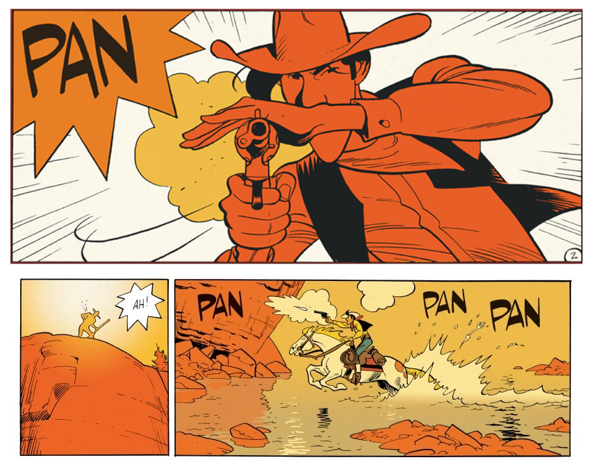 In (Western-) strips is er nog geen 1-duidigheid over het geluid van vuurwapens, met name de Colt.