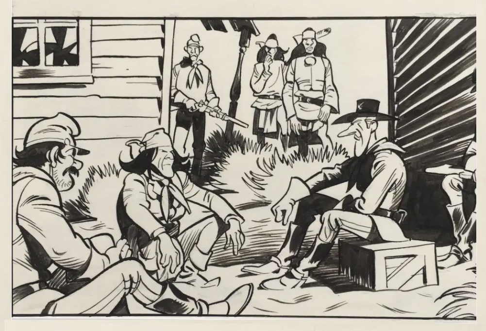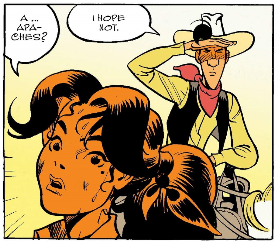 Hier trekken (letterlijk) alle hierboven genoemde "premiejagers" aan (Un-) luky Luke en moet kolonel O'Nollan ingrijpen, w.o. een pow-wow met Patromino: https://i.postimg.cc/pddkRDmX/171467237-10158870890632110-5383020695995861257-n.jpghttps://i.postimg.cc/0yGft0VW/L-L-Bonhomme-2021-40-1.jpghttps://i.postimg.cc/PfB99KMT/L-L-Bonhomme-2021-40-2.png