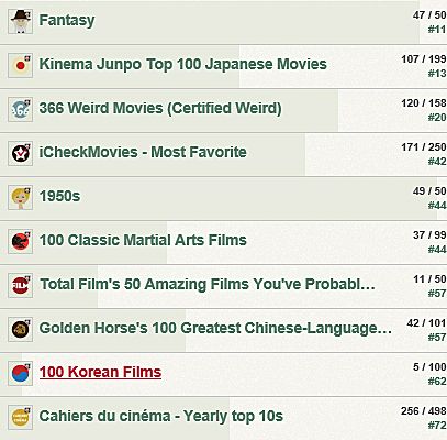 Is iemand het ook beu om te zien hoe zijn awards verloren gaan omdat er weer 10 Oosterse films in de lijsten zijn opgedoken? Oh, ik en mijn exclusief Westerse blik toch...