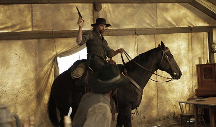 Het steigerende paard in de saloon, uit "Hickock" blijkt overigens een opgezet paard, of een kartonnen stand-up (?) te zijn..