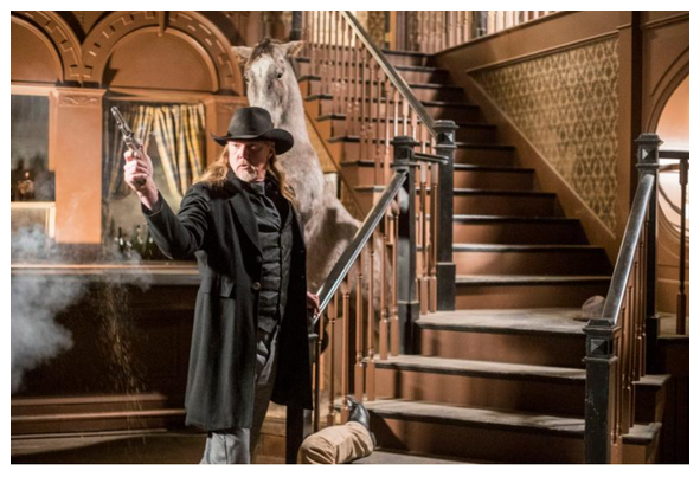 Het steigerende paard in de saloon, uit "Hickock" blijkt overigens een opgezet paard, of een kartonnen stand-up (?) te zijn.