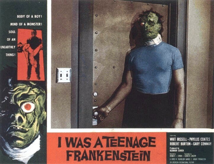 Die Frankenstein is zeer zeker geen teenager, wel een afstammeling van de eerdere doktors Frankenstein die er in de jaren 50 achterkomt waar de fout van zijn voorgangers lag: de lichaamsdelen waren te oud, verse teenagers heb je nodig!