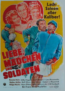 Here you will find an overview of the cast of the movie Liebe, Mädchen und Soldaten from the year 1958, including all the actors, actresses and the director. When you click on the name of an actor, actress or director from the movie Liebe, Mädchen und Soldaten-cast you can watch more movies and/or series by him or her. Click here for more infomation about the movie.