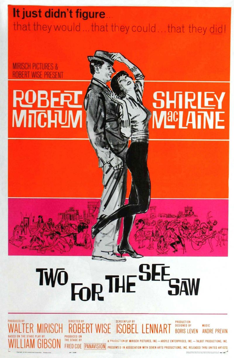 Here you will find an overview of the cast of the movie Two for the Seesaw from the year 1962, including all the actors, actresses and the director. When you click on the name of an actor, actress or director from the movie Two for the Seesaw-cast you can watch more movies and/or series by him or her. Click here for more infomation about the movie.