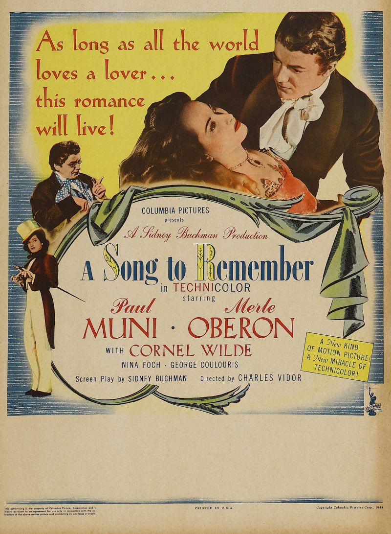 Here you will find an overview of the cast of the movie A Song to Remember from the year 1945, including all the actors, actresses and the director. When you click on the name of an actor, actress or director from the movie A Song to Remember-cast you can watch more movies and/or series by him or her. Click here for more infomation about the movie.