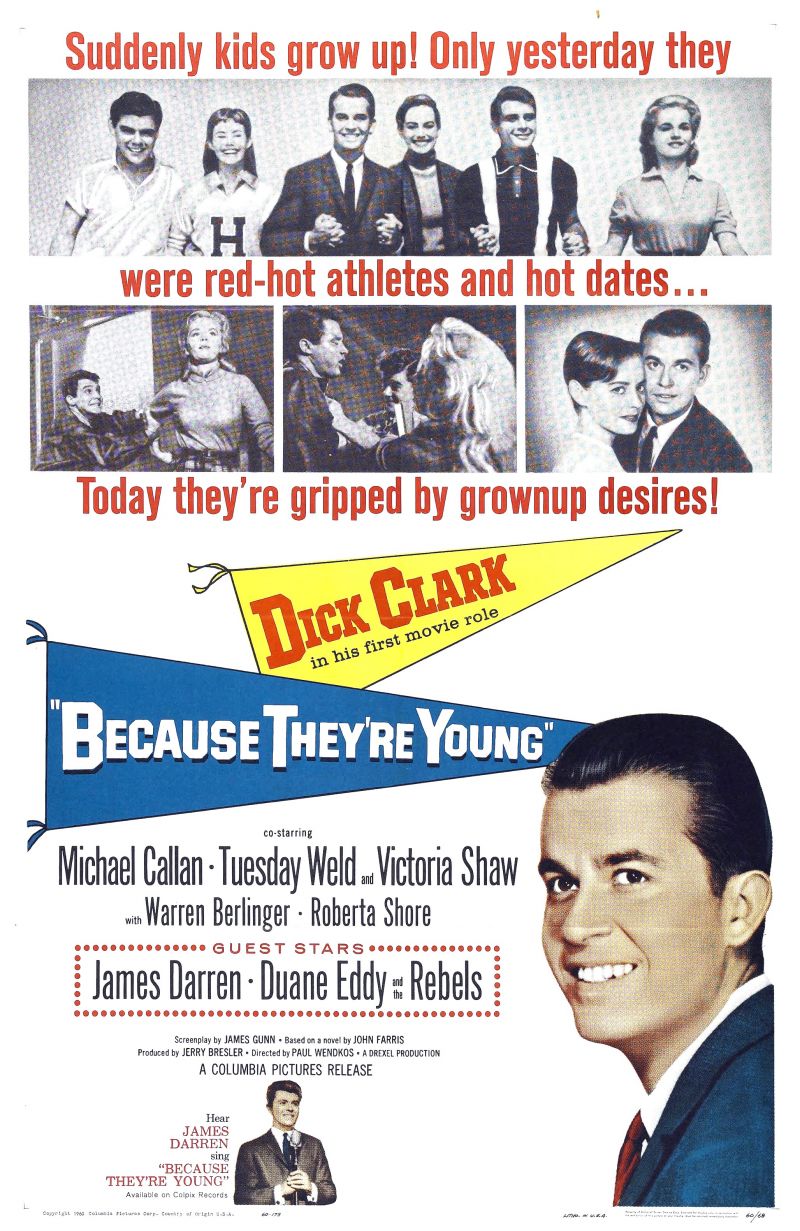 Here you will find an overview of the cast of the movie Because They're Young from the year 1960, including all the actors, actresses and the director. When you click on the name of an actor, actress or director from the movie Because They're Young-cast you can watch more movies and/or series by him or her. Click here for more infomation about the movie.