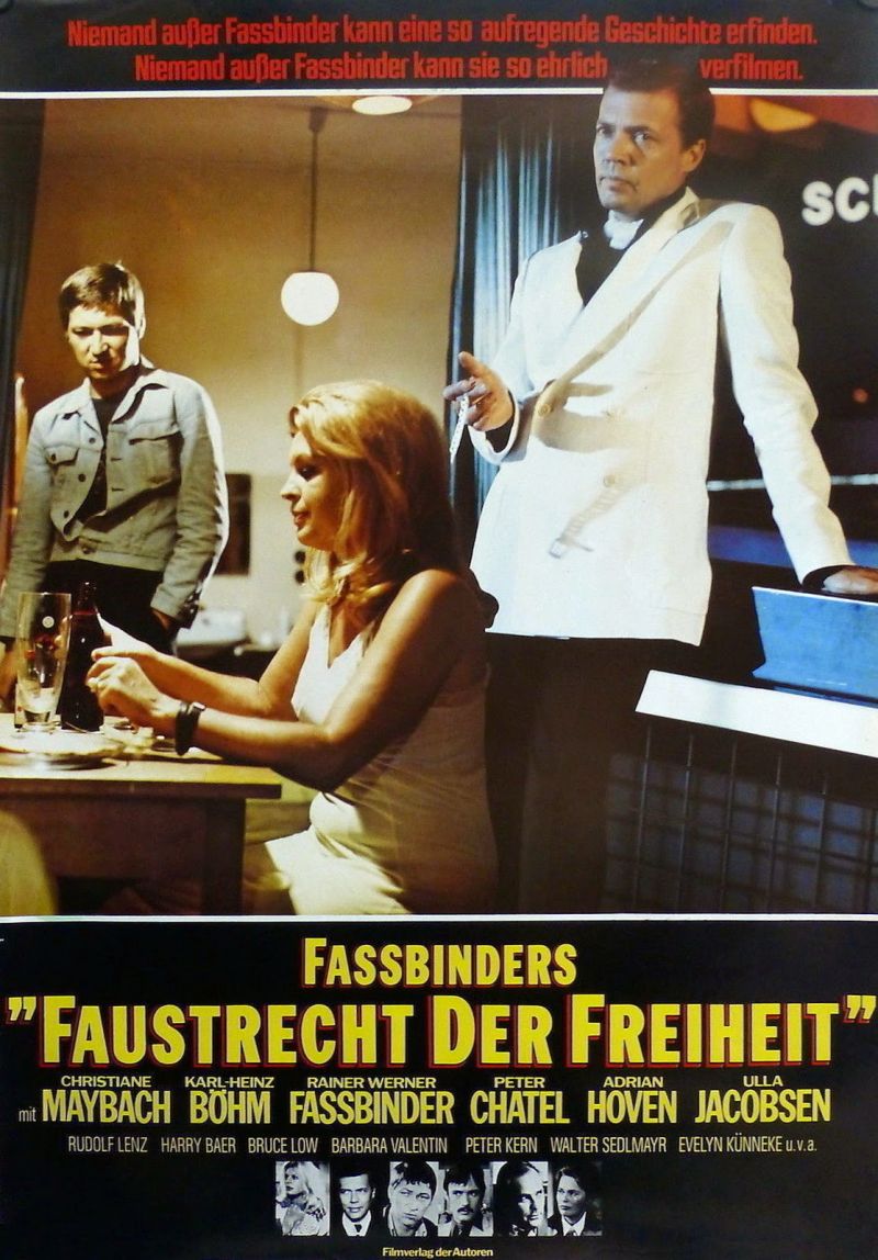 Here you will find an overview of the cast of the movie Faustrecht der Freiheit from the year 1975, including all the actors, actresses and the director. When you click on the name of an actor, actress or director from the movie Faustrecht der Freiheit-cast you can watch more movies and/or series by him or her. Click here for more infomation about the movie.