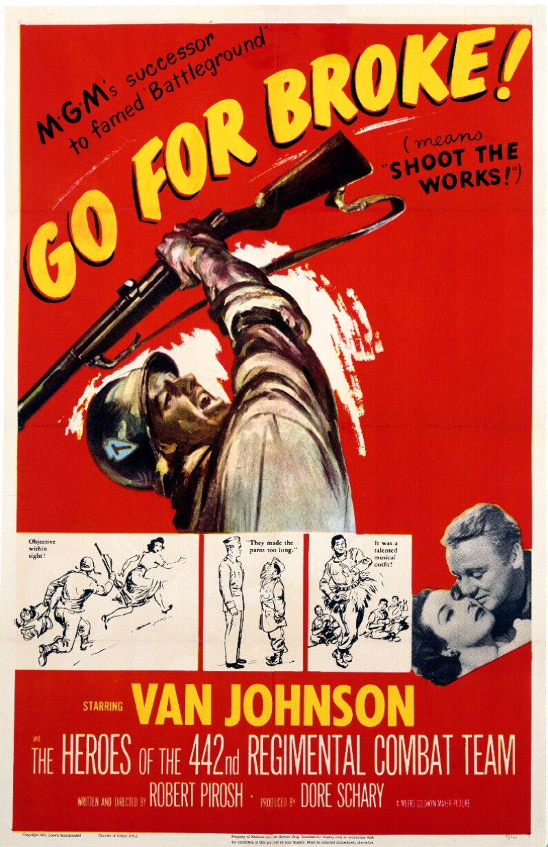 Here you will find an overview of the cast of the movie Go for Broke! from the year 1951, including all the actors, actresses and the director. When you click on the name of an actor, actress or director from the movie Go for Broke!-cast you can watch more movies and/or series by him or her. Click here for more infomation about the movie.