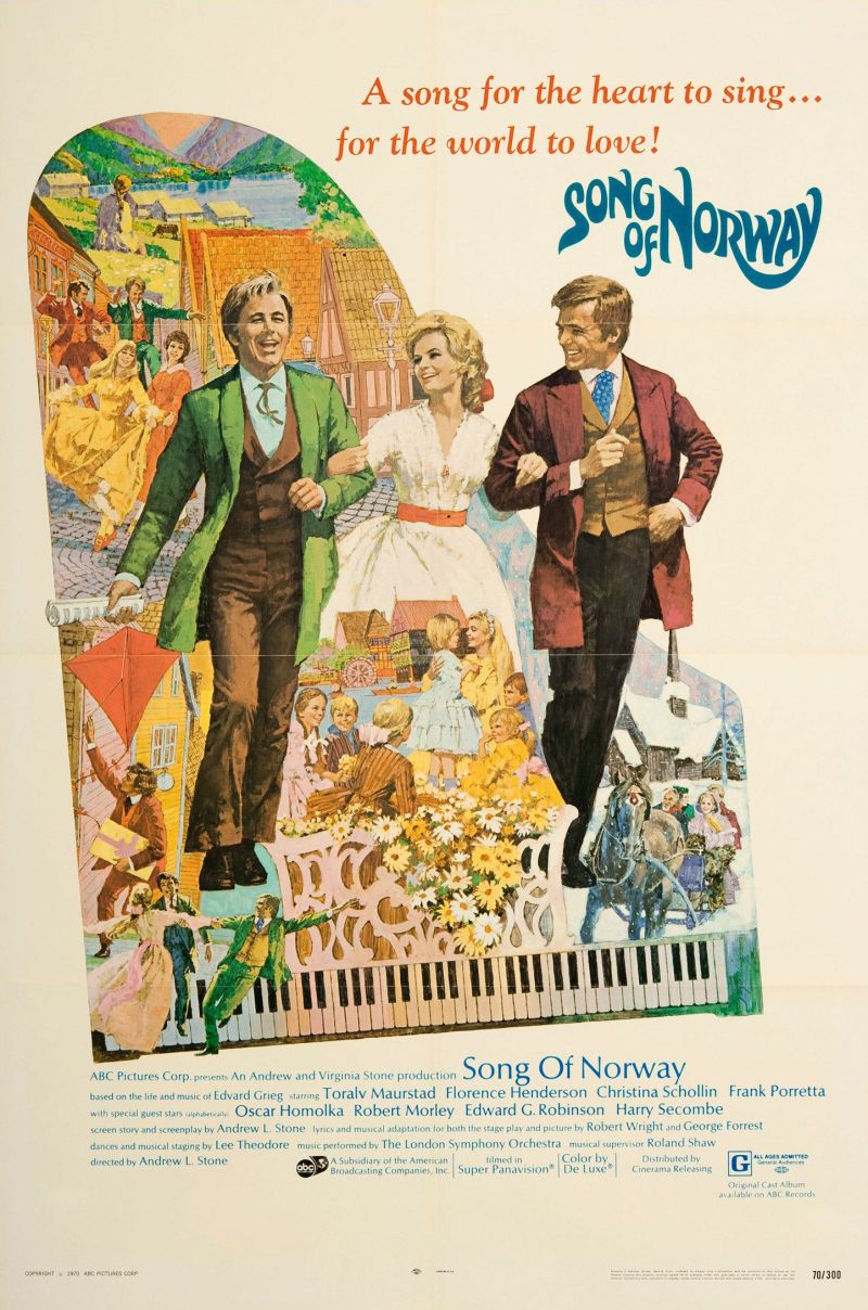 Here you will find an overview of the cast of the movie Song of Norway from the year 1970, including all the actors, actresses and the director. When you click on the name of an actor, actress or director from the movie Song of Norway-cast you can watch more movies and/or series by him or her. Click here for more infomation about the movie.