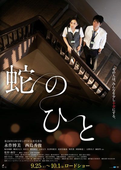 Here you will find an overview of the cast of the movie Hebi no Hito from the year 2010, including all the actors, actresses and the director. When you click on the name of an actor, actress or director from the movie Hebi no Hito-cast you can watch more movies and/or series by him or her. Click here for more infomation about the movie.
