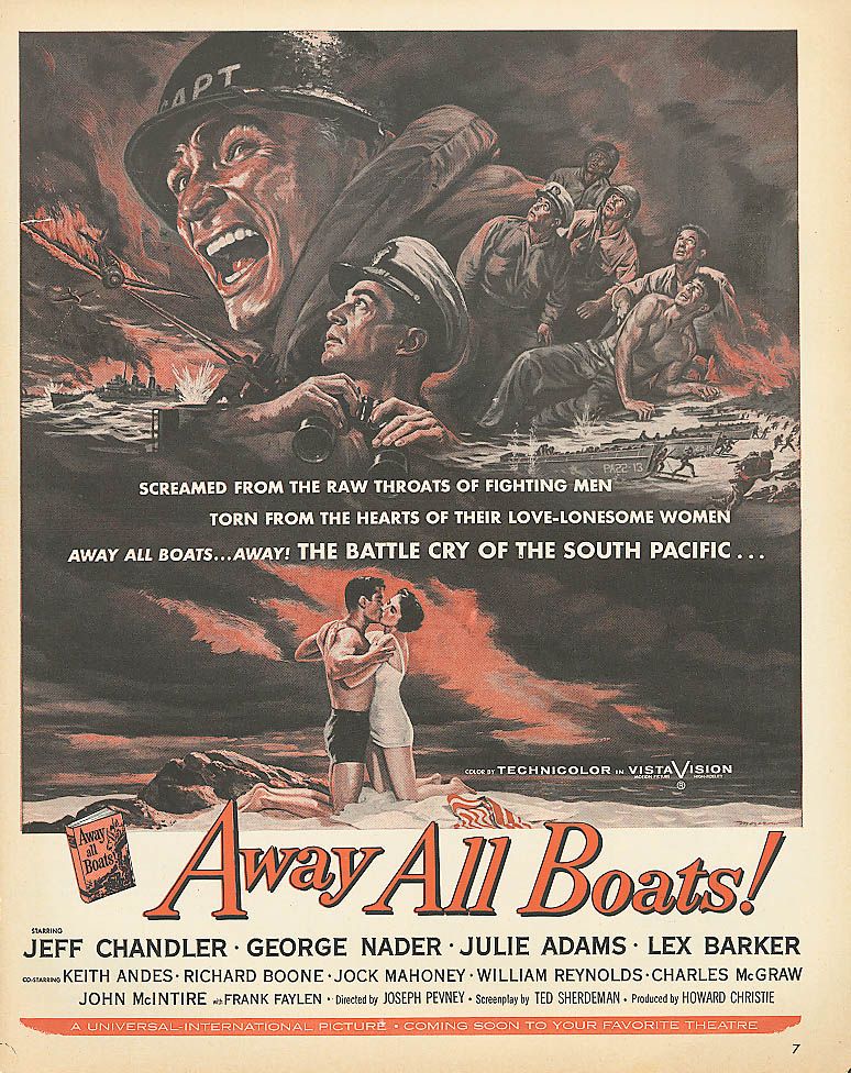 Here you will find an overview of the cast of the movie Away All Boats from the year 1956, including all the actors, actresses and the director. When you click on the name of an actor, actress or director from the movie Away All Boats-cast you can watch more movies and/or series by him or her. Click here for more infomation about the movie.