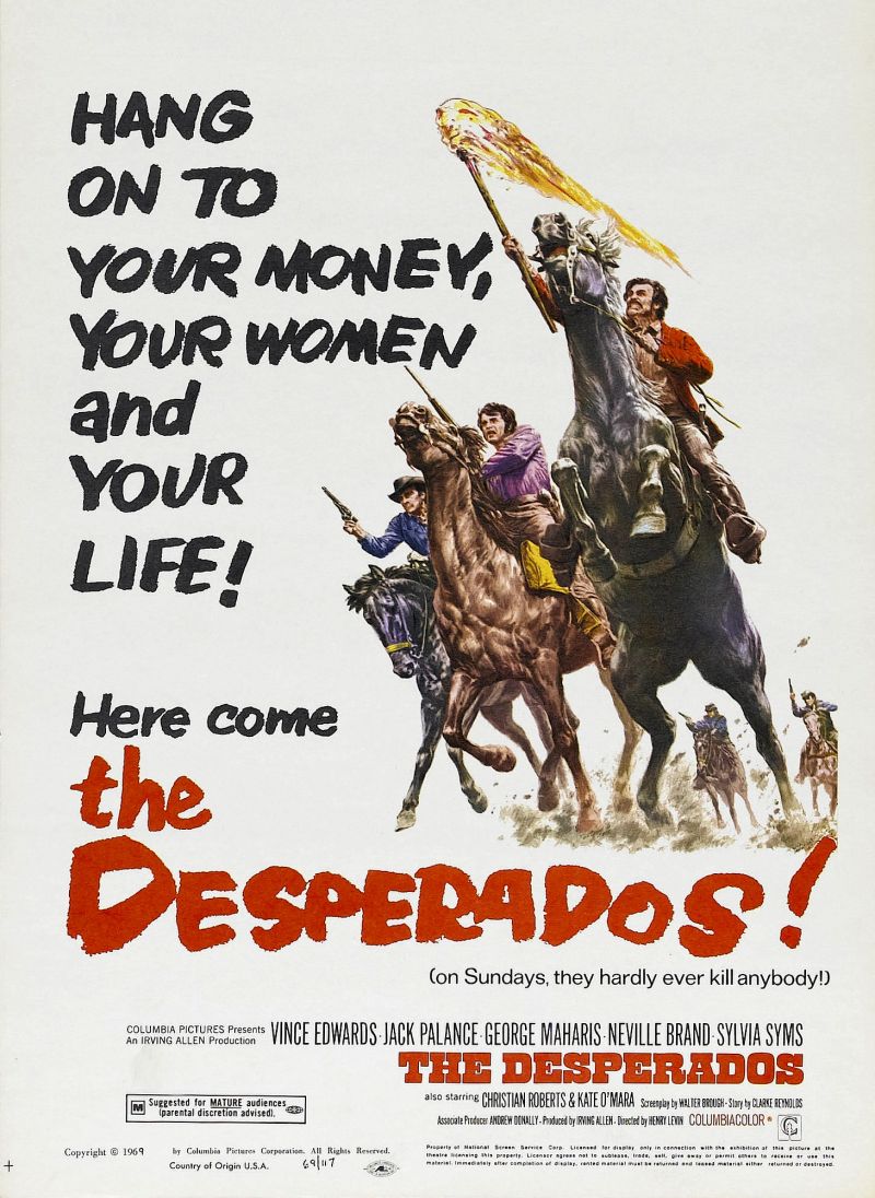 Here you will find an overview of the cast of the movie The Desperados from the year 1969, including all the actors, actresses and the director. When you click on the name of an actor, actress or director from the movie The Desperados-cast you can watch more movies and/or series by him or her. Click here for more infomation about the movie.
